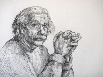 This is one of my portraits I like to do of people who interest me...often from the past. IThis is one of my portraits I like to do of people who interest me...often from the past. It helps me to understand them, and also to share my ideas about them with others. What interests me about Helen Keller is that she was born completely blind and deaf. By rights she should have been the most miserably unhappy person, but when you see photos of her she often has an expression of comlete joy. Why? Why?t helps me to understand them, and also to share my ideas about them with others. What interests me about Helen Keller is that she was born completely blind and deaf. By rights she should have been the most miserably unhappy person, but when you see photos of her she often has an expression of comlete joy. Why? Why? I think that because she was not being constantly bombarded with sensory information as we all are, she was left somehow able to see things that we cannot...the spiritual side that is blocked to most of us...if you like she could see God. This I try to show, by showing her flooded with light, looking upward, as she was in the photo I used as a basis for the drawing. Light I use because light occurs over and over again in accounts of spiritual experiences, and I personally have experienced it myself.